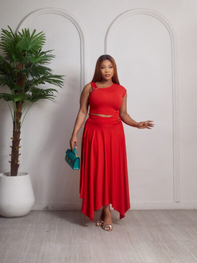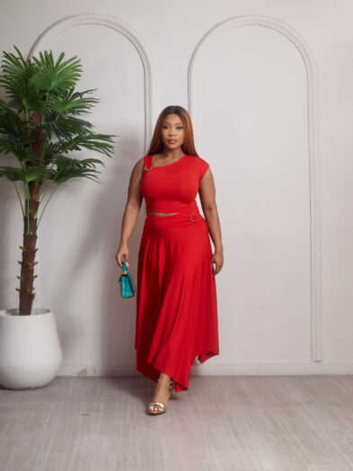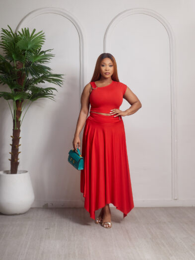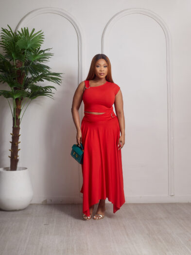 Be the first to review “(2FOR40K)ZAKUMI RED GOLD CLIP DETAIL TOP X SKIRT SUIT SET”