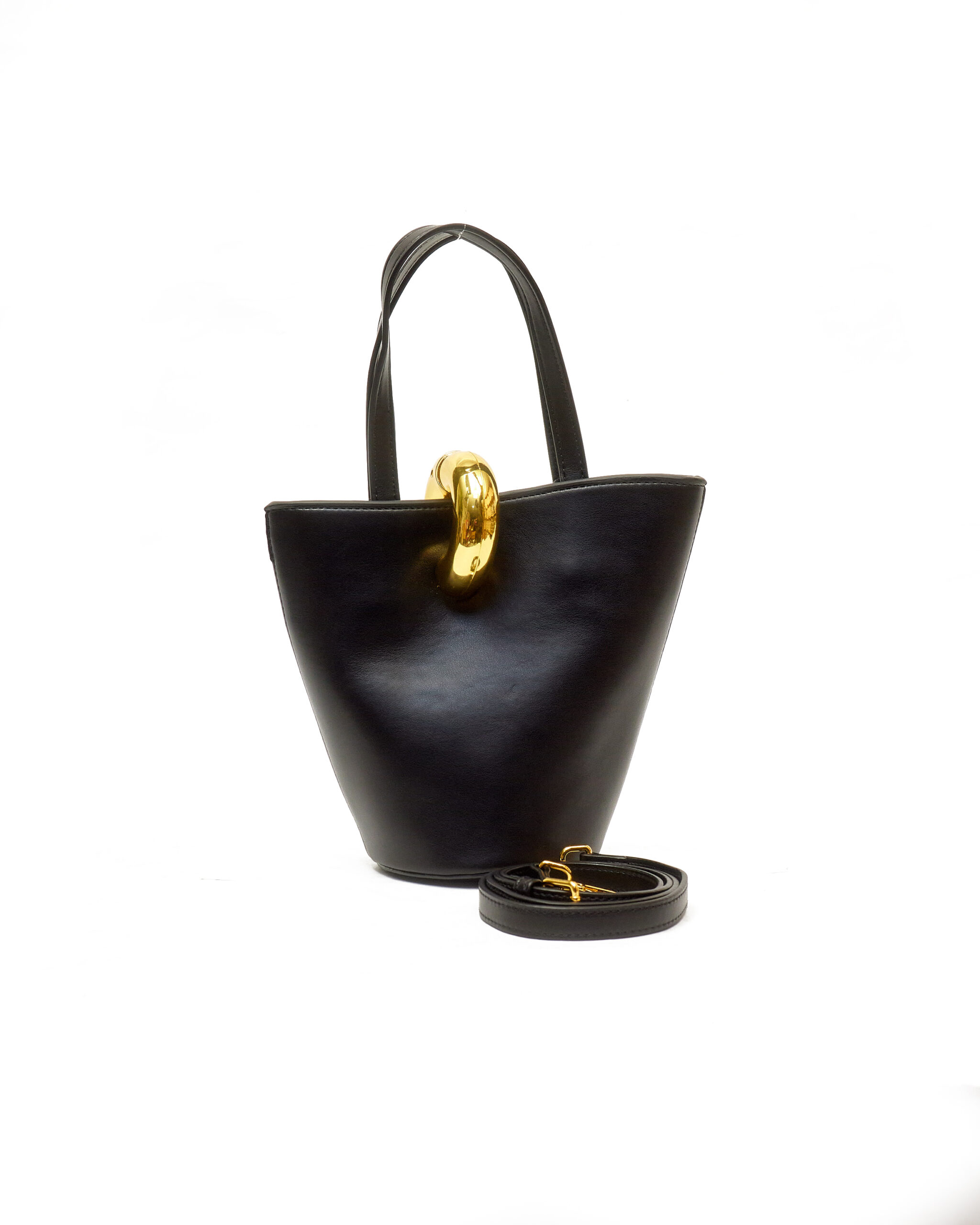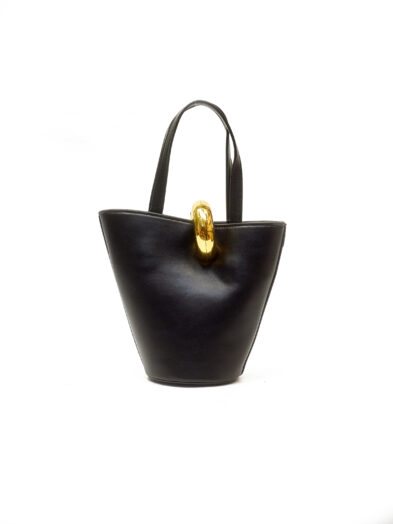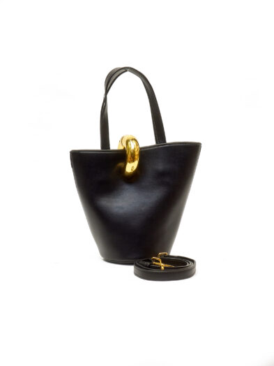 Be the first to review “BLACK SMOOTH LEATHER JACCY ROUND GOLD BUCKLE BUCKET BAG”