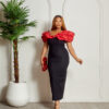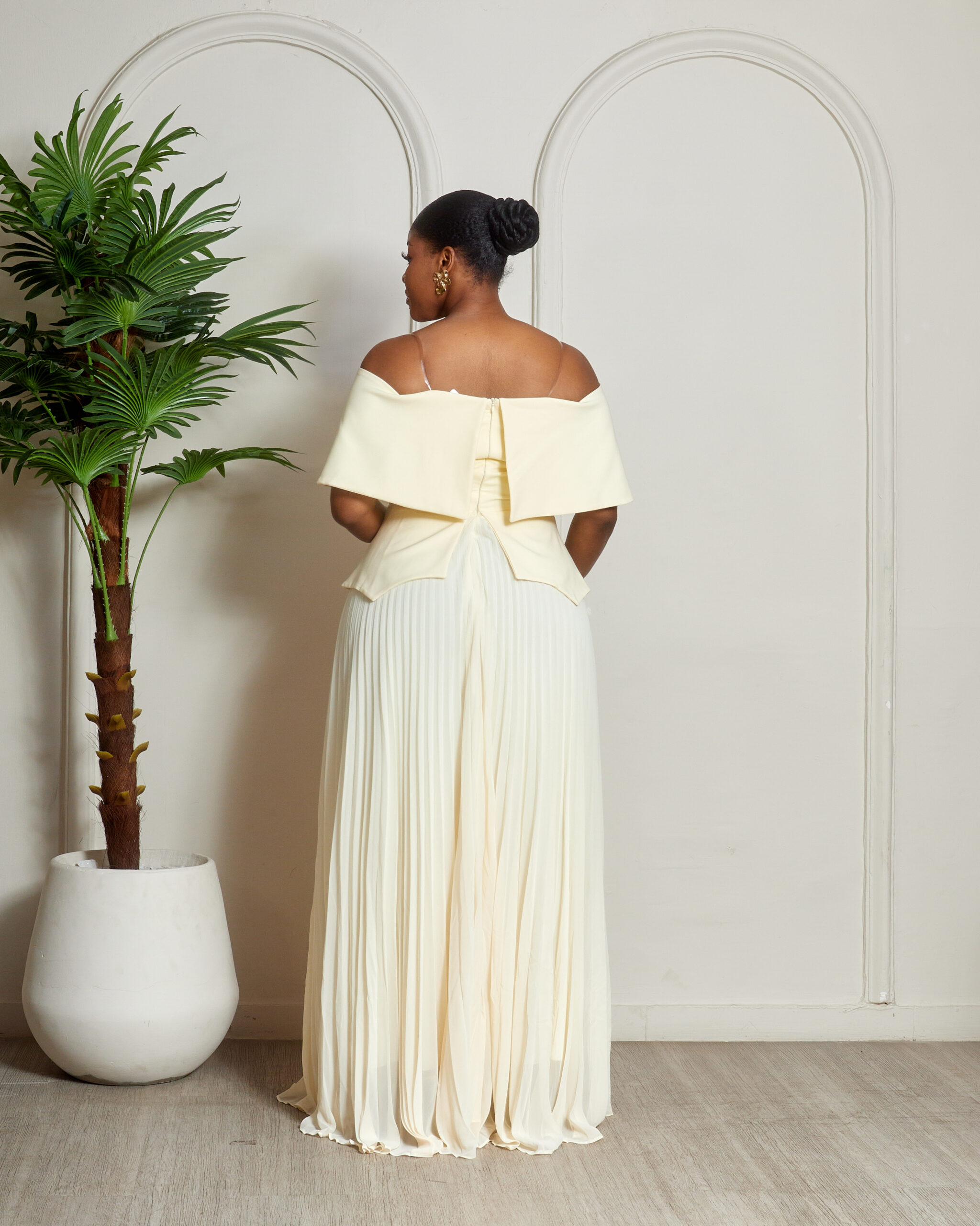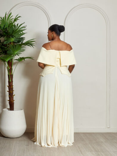 Be the first to review “ELIZZA YELLOW STONE DETAIL BARDOT PEPLUM PLEATED DRESS”