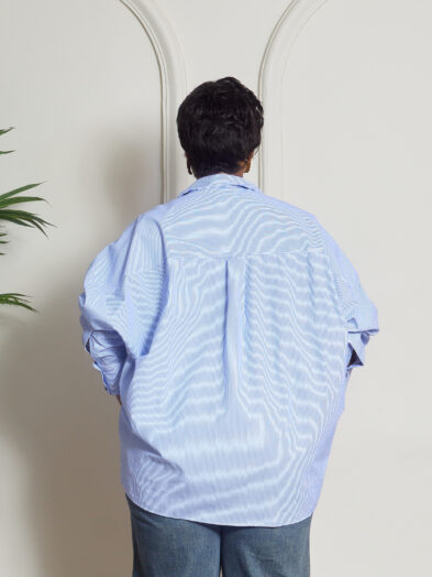 Be the first to review “FAME ONE POCKET THIN BLUE STRIPE OVERSIZED SHIRT”