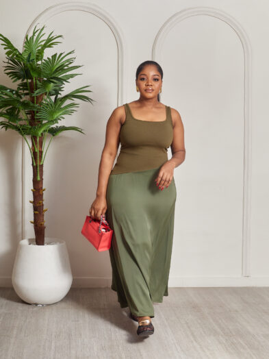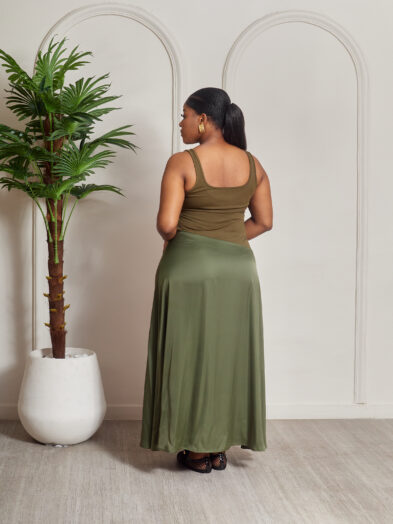 Be the first to review “KHAKI SILK HEM X STRETCH BODYCON MIDI DRESS”