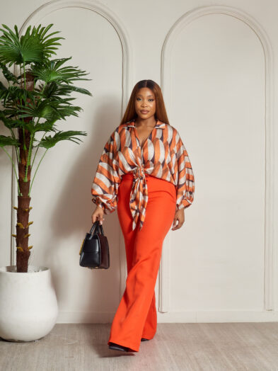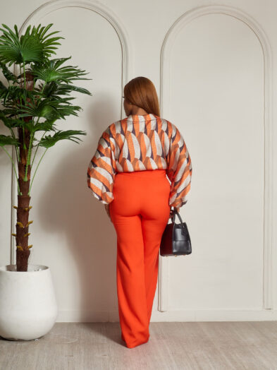 Be the first to review “MISS HAVIS ORANGE PRINT ROUND RING BLOUSE PANT SUIT SET”