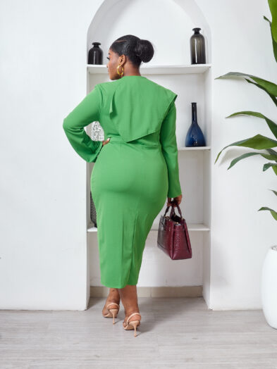 Be the first to review “POG OLIVE BUTTON SHAWL DETAIL MIDI DRESS”