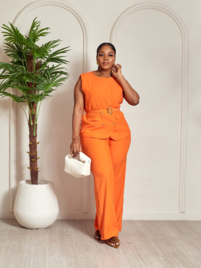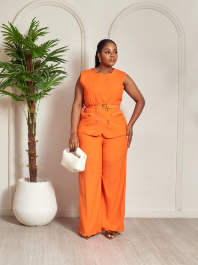 Be the first to review “ZR ORANGE B BUCKLE SLEEVELESS WAISTCOAT PANT SUIT SET”